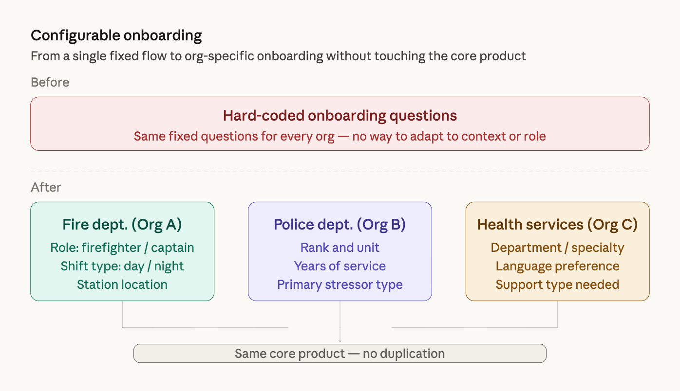 In high-stigma environments, perceived safety is the product. No feature sophistication matters if the user doesn't feel safe enough to open the app. Every decision ( the alias, the org codes, the dual pathways) came back to the same principle: reduce the emotional cost of asking for help, at every step, before anything else.