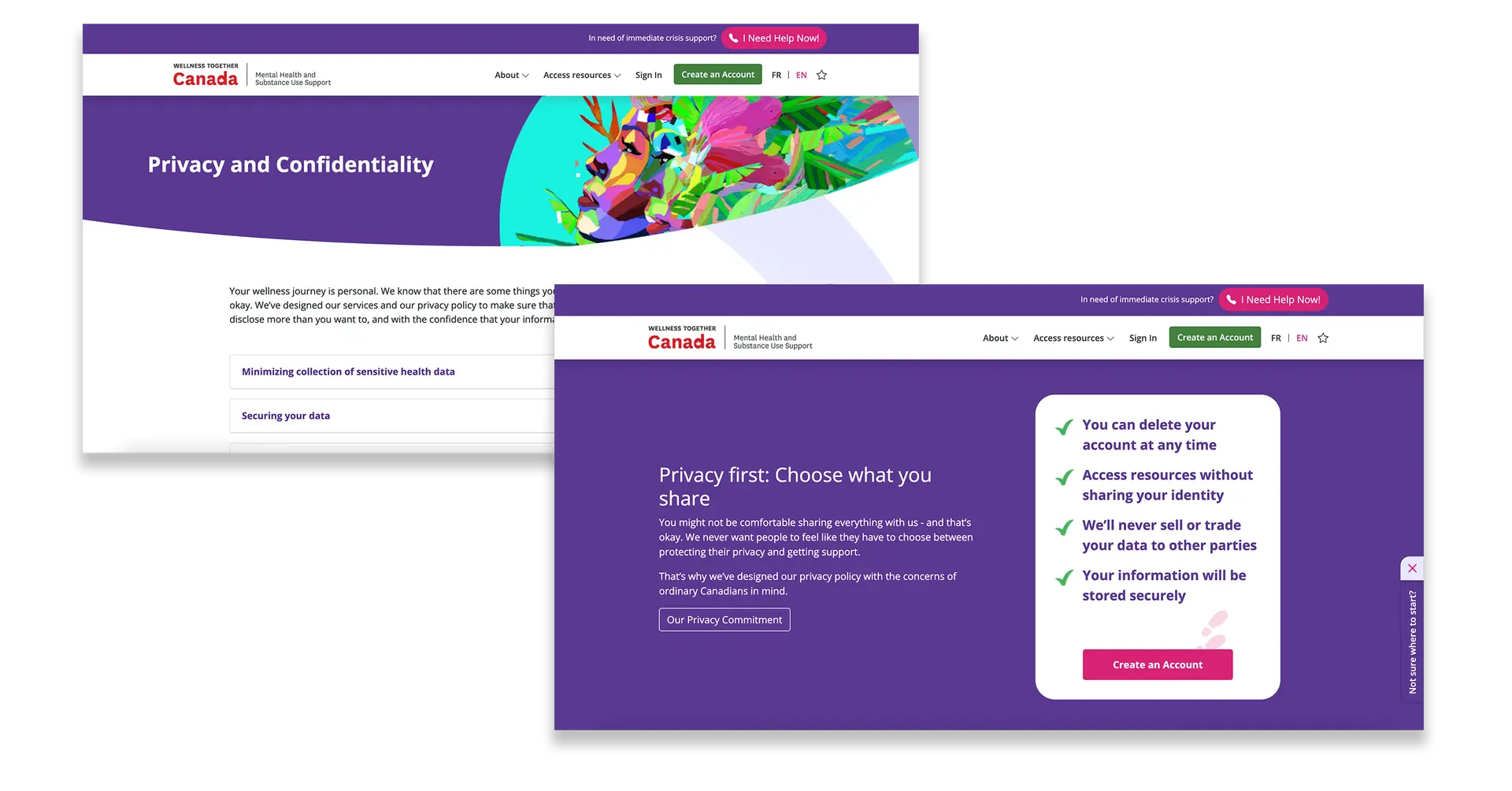 - Proposed gradient consent to replace the binary opt-in wall. Usability testing with previous users revealed visible hesitation at the consent screen- a binary gate requiring full data sharing before proceeding. In a mental health context where users are acutely sensitive to privacy, this was an adoption risk from day one. I recommended a tiered model: anonymous browsing by default, with layered opt-ins unlocking personalization progressively. The tradeoff was reduced first-session data. The bet: building trust early would increase willingness to share over time.
